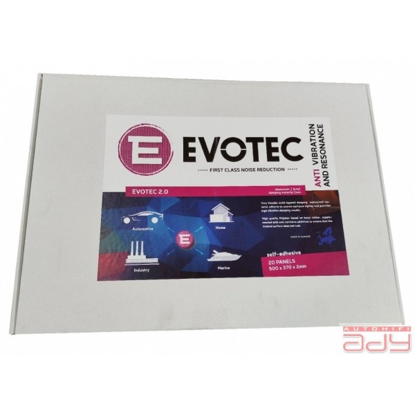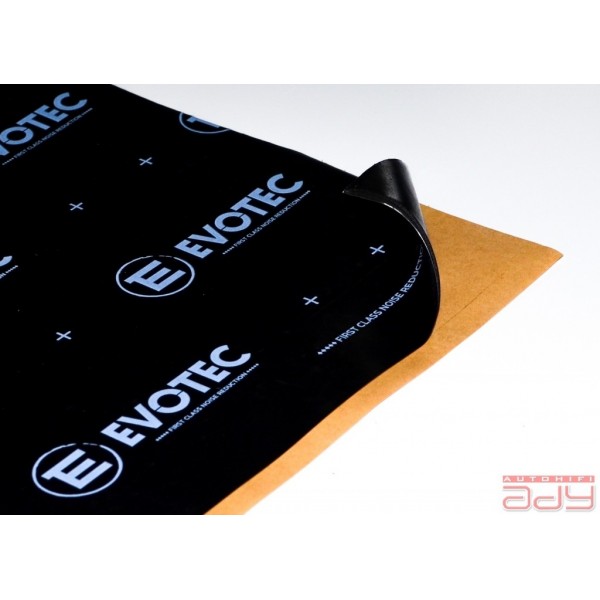 Vysokokvalitný polymér na báze butylovej gumy - aplikovaný na hliníkovú fóliu, doplnený o antikorózne prísady na zaistenie, že ošetrený povrch nehrdzavie a je vysoko samolepiaci, oproti konkurencii, má Evotec hrubšiu hliníkovú fóliu, čím je účinnosť tlmenia vyššia a pevnejšia